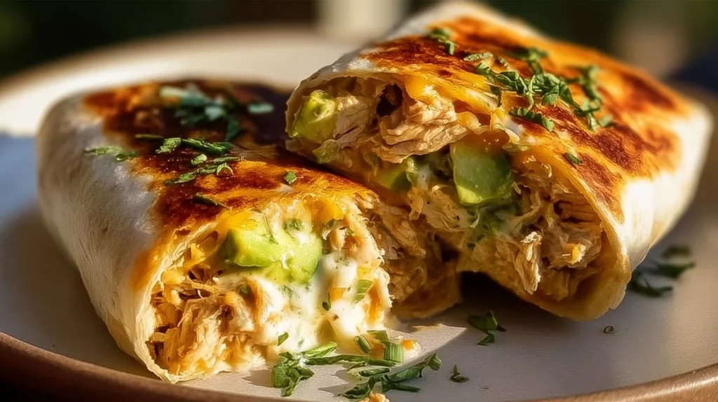 Delicious Chicken Avocado Ranch Burritos ready to enjoy on a plate